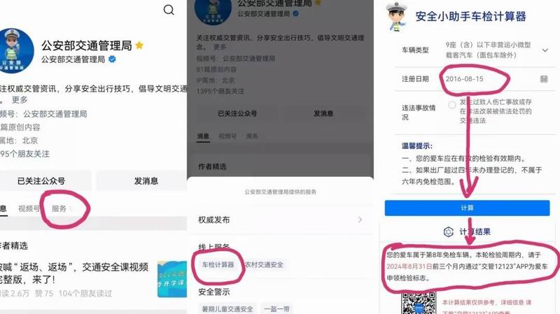 為了方便廣大車主查詢自己名下車輛的上線檢驗時間,公安部交通管理局開發(fā)了“車檢計算器”小程序,只需選擇注冊登記時間,即刻就能知道結(jié)果!